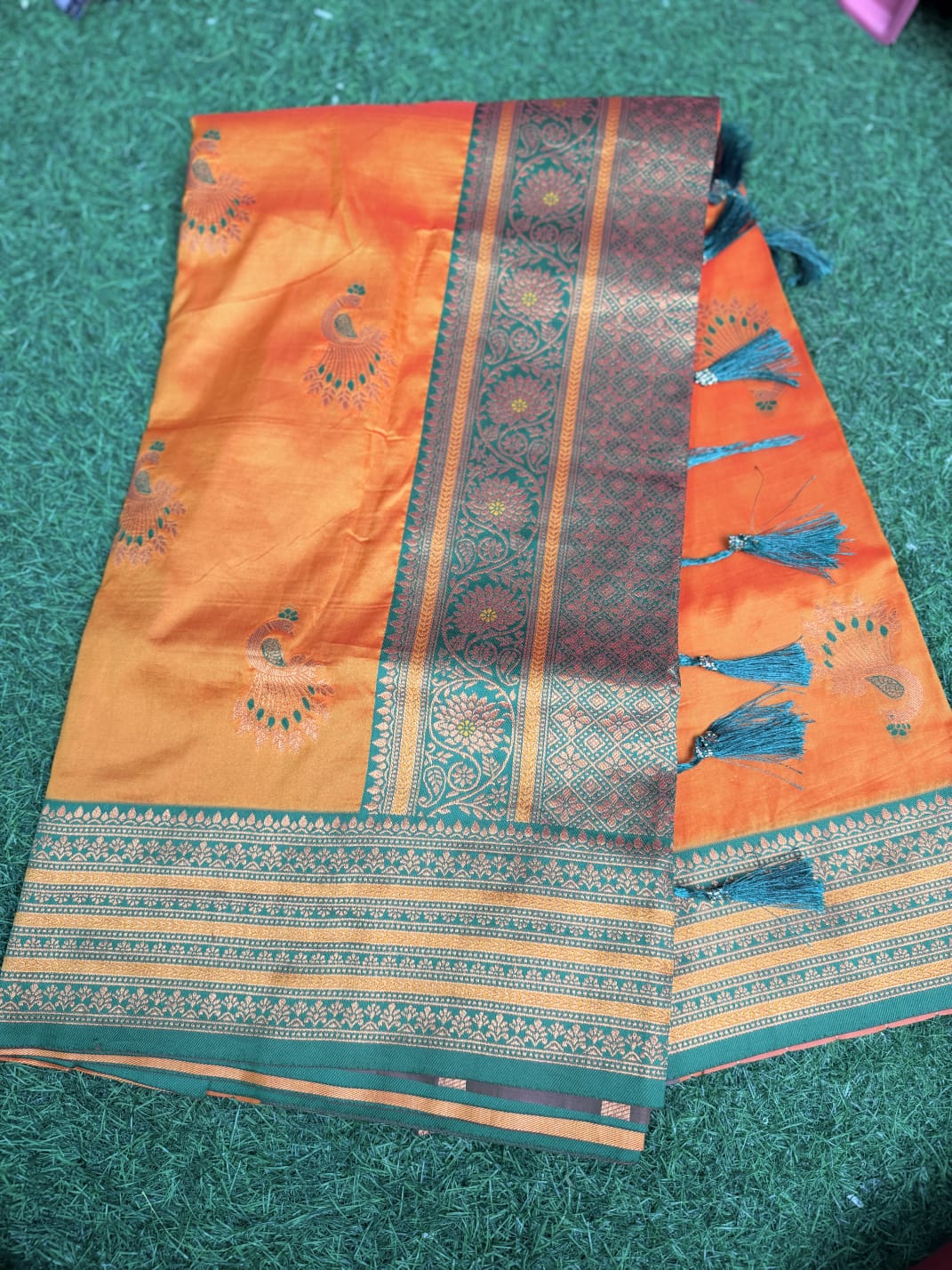 (FREE SHIPPING)Banaras Saree  at affordable  prices are here at Thirumala Sarees! These sarees have minor weaving imperfections and slight damages. Perfect for casual wear or styling experiments, they’re a blend of beauty and budget-friendly charm. Visit us at Boduppal to explore this exclusive collection.