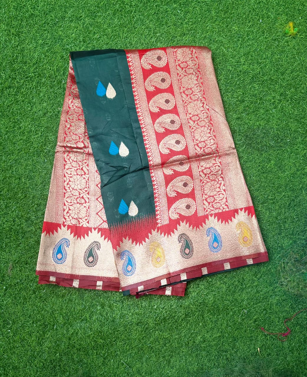 Banaras Saree  at affordable  prices are here at Thirumala Sarees! These sarees have minor weaving imperfections and slight damages. Perfect for casual wear or styling experiments, they’re a blend of beauty and budget-friendly charm. Visit us at Boduppal to explore this exclusive collection.