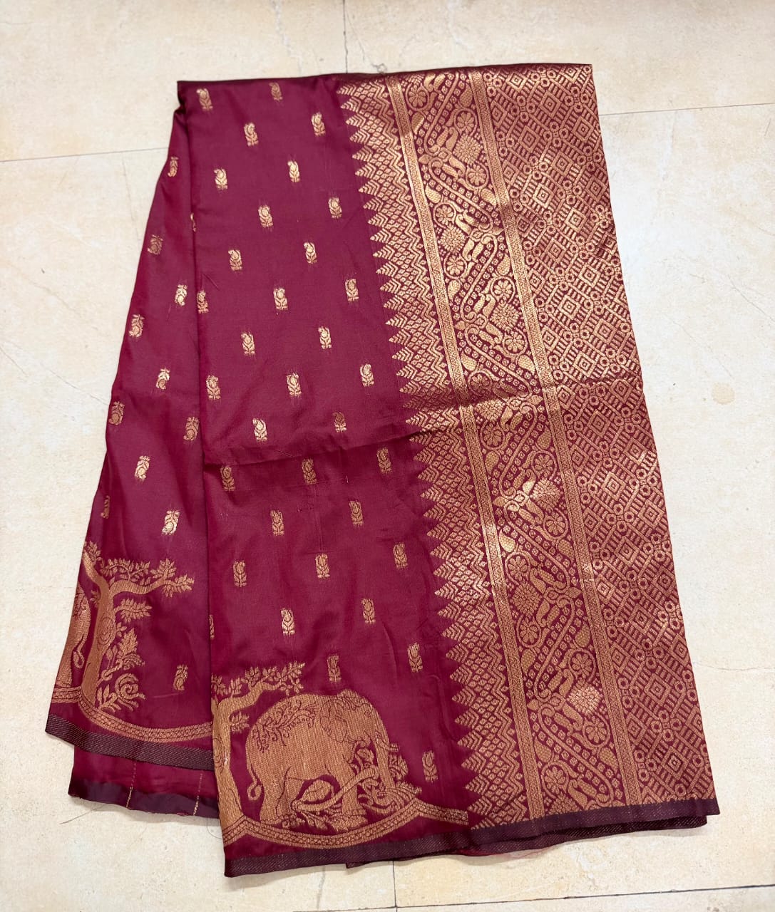 Banaras Saree  at affordable  prices are here at Thirumala Sarees! These sarees have minor weaving imperfections and slight damages. Perfect for casual wear or styling experiments, they’re a blend of beauty and budget-friendly charm. Visit us at Boduppal to explore this exclusive collection.