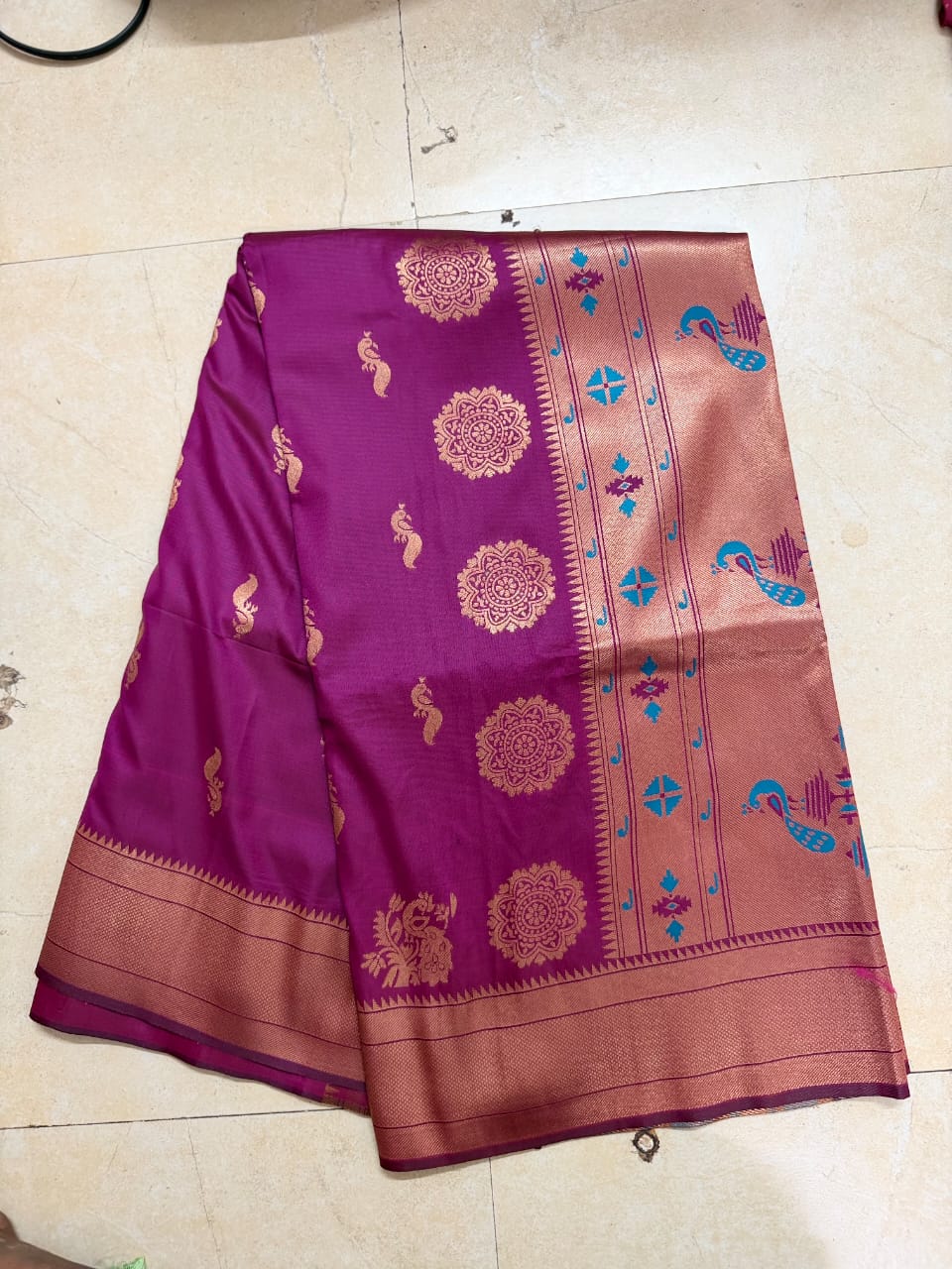 Banaras Saree  at affordable  prices are here at Thirumala Sarees! These sarees have minor weaving imperfections and slight damages. Perfect for casual wear or styling experiments, they’re a blend of beauty and budget-friendly charm. Visit us at Boduppal to explore this exclusive collection.
