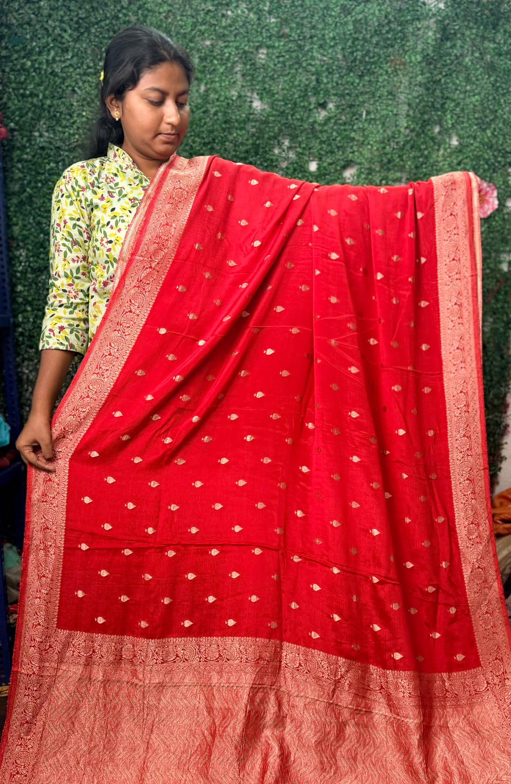 Banarasi Satin Sarees at affordable prices are here at Thirumala Sarees! These sarees have minor weaving imperfections and slight damages. Perfect for casual wear or styling experiments, they’re a blend of beauty and budget-friendly charm. Visit us at Boduppal to explore this exclusive collection!