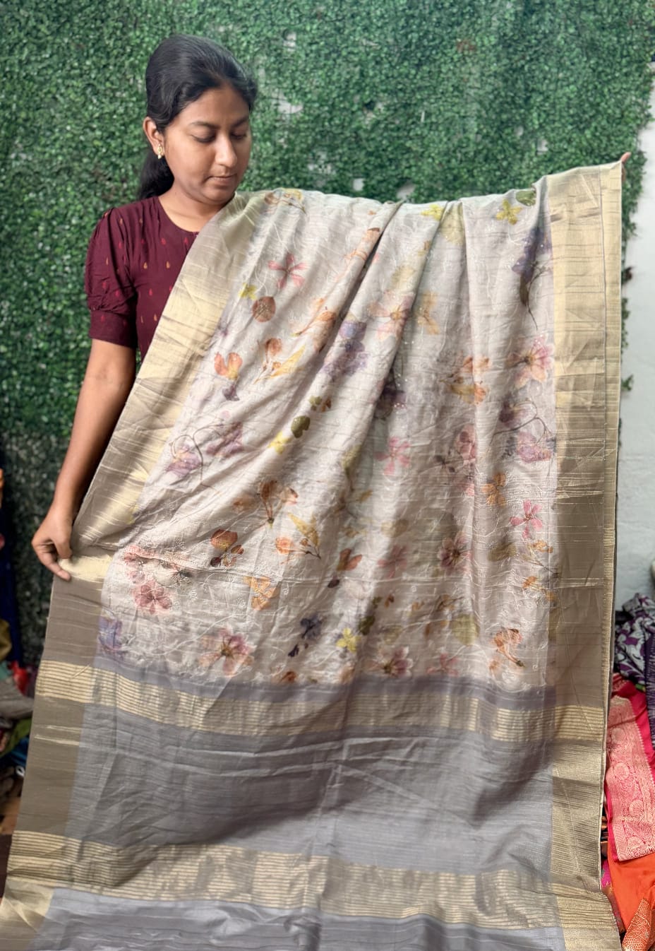 Desi Tussar  Sarees at affordable prices are here at Thirumala Sarees! These sarees have minor weaving imperfections and slight damages. Perfect for casual wear or styling experiments, they’re a blend of beauty and budget-friendly charm. Visit us at Boduppal to explore this exclusive collection!