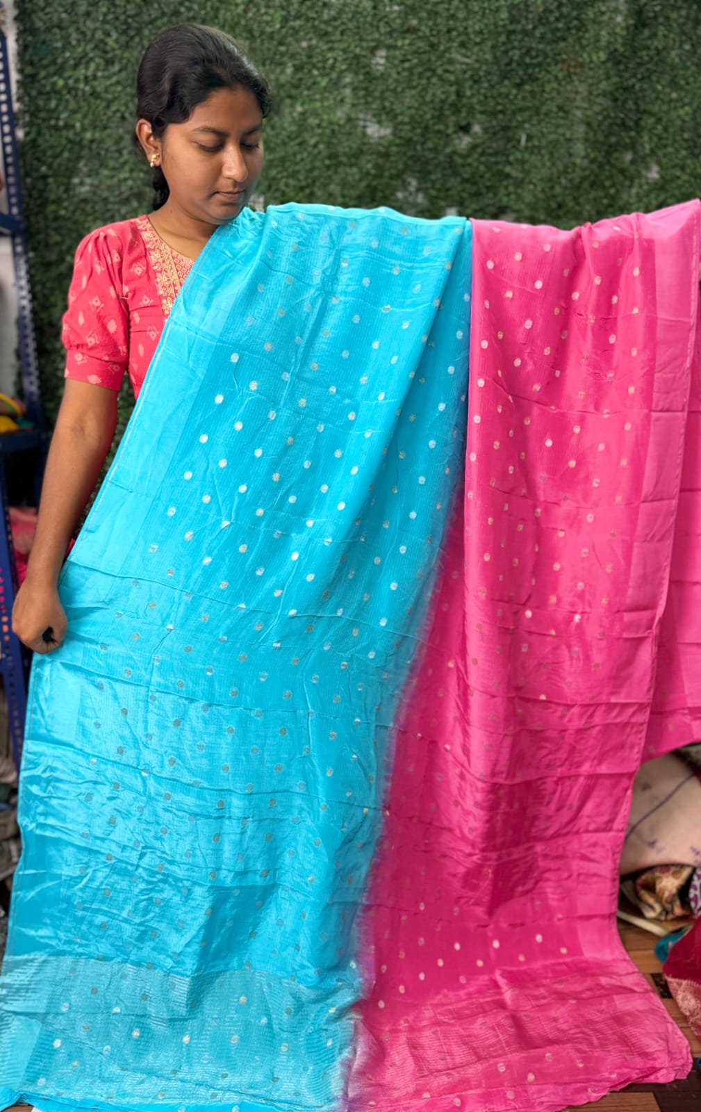 Maslina  Sarees at affordable  prices are here at Thirumala Sarees! These sarees have minor weaving imperfections and slight damages. Perfect for casual wear or styling experiments, they’re a blend of beauty and budget-friendly charm. Visit us at Boduppal to explore this exclusive collection!