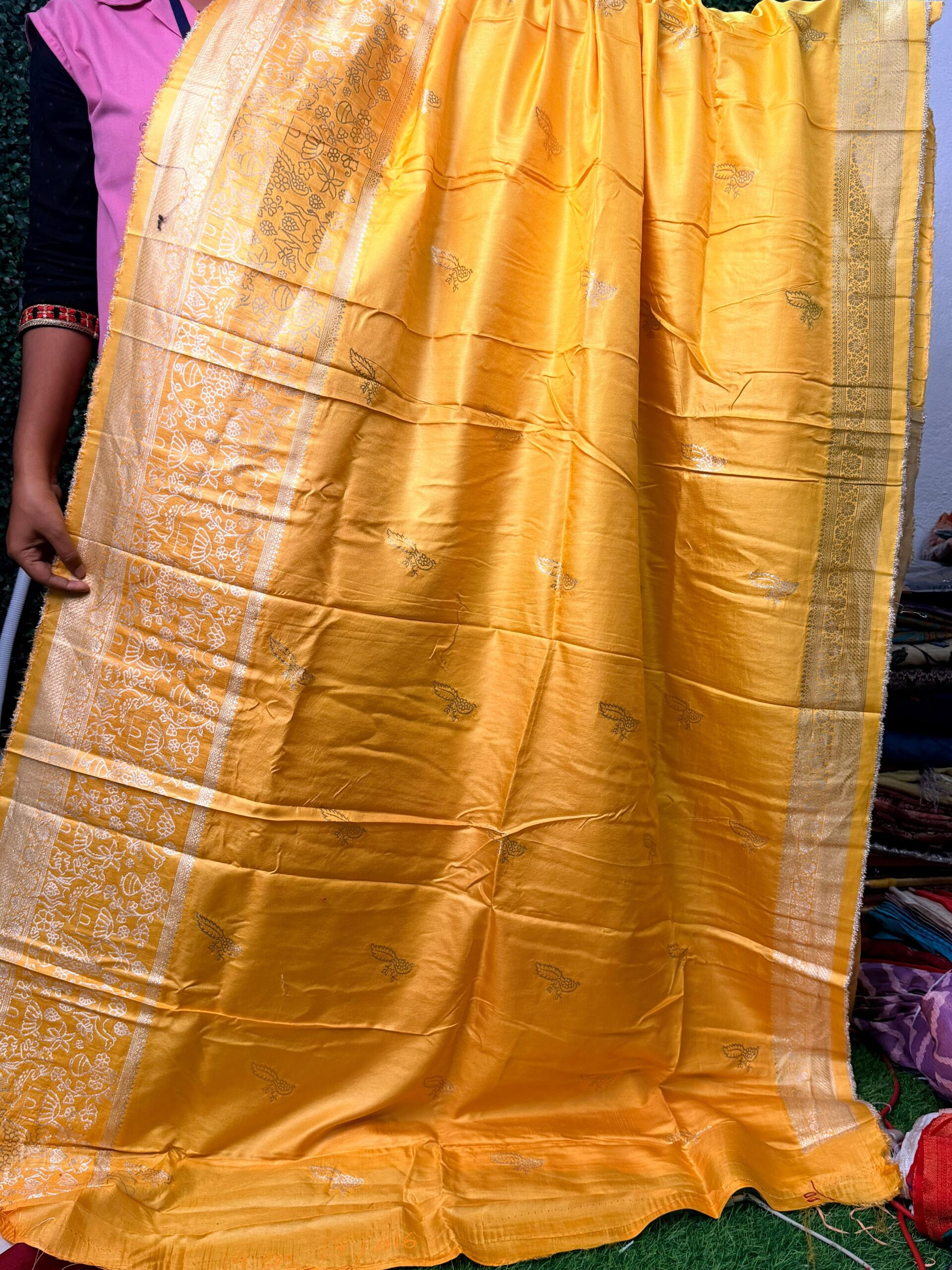 Span Dola  Sarees at affordable  prices are here at Thirumala Sarees! These sarees have minor weaving imperfections and slight damages. Perfect for casual wear or styling experiments, they’re a blend of beauty and budget-friendly charm. Visit us at Boduppal to explore this exclusive collection.